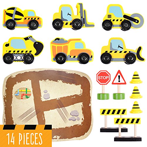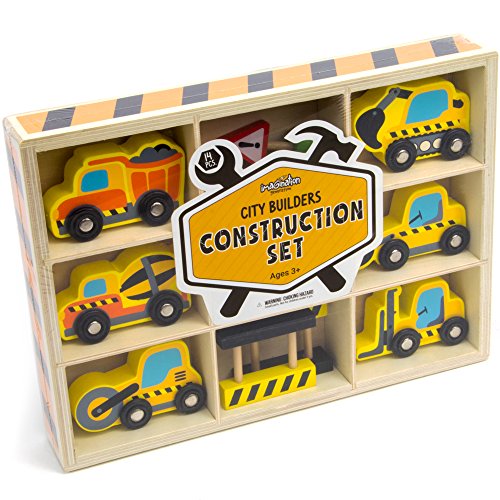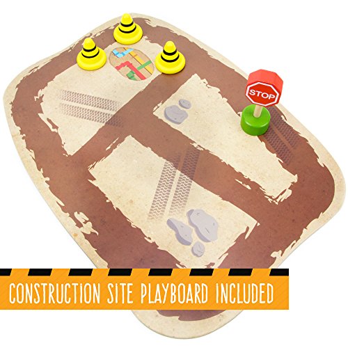 Studio : IMG Publisher : IMG Binding : Toy Product Description Beep beep! You are now entering a construction zone. This wooden construction set includes 1 dump truck, 1 road roller, 1 forklift, 1 bulldozer, 1 cement truck and 1 excavator, an assortment of street signs and traffic cones, and a cardboard construction site for enhanced playtime! These wooden toys are cut from real wood, sanded smooth, and painted brightly with safe non-toxic, water-based paint so they are safe for little hands. A classic and convenient way to let your child build their imagination! Imaginative gameplay is a great way to facilitate your childs creativity, independence, hand-eye coordination and social skills. In addition to this, learning about the various functions of each vehicle teaches your child basic concepts like cause and effect! 0