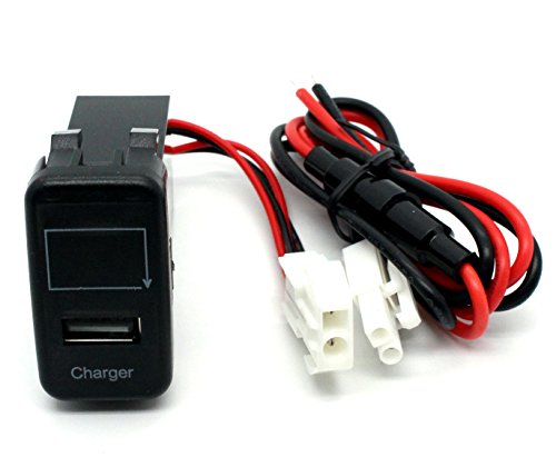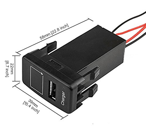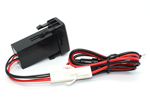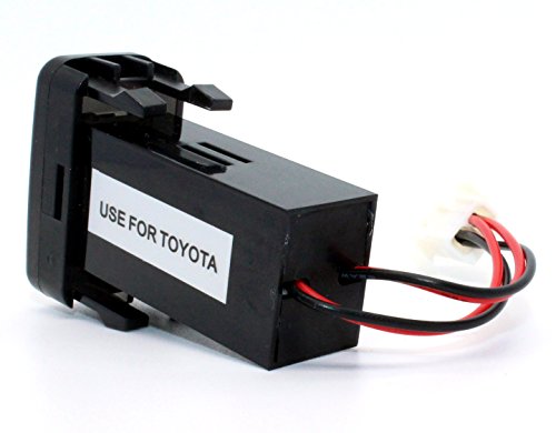 Input: 12V-30V; output: 5V 2.1A, works great as a replacement or extra dual USB charger in Toyota 1.9ft wiring and fuse included. Blue voltmeter tester allow you to test the VOLT easy.