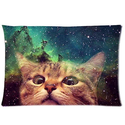 InterestPrint Custom Funny Cat in Galaxy Space Zippered Pillowcase 20 X 30 Inch (Twin Side) , Nebula Universe Star with Kitten Pillow Case Cover