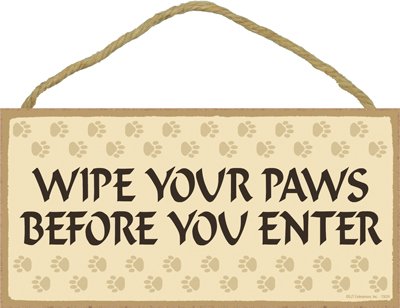 (SJT13024) Wipe Your Paws Before You Enter 5" x 10" Wood Plaque Sign