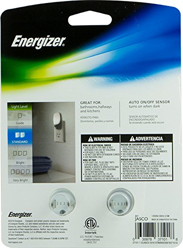 Let there be light with the Energizer Automatic Nightlight. The soft, white LEDs provide enough illumination to guide you safely in a dim room or hallway. There’s no need to unplug when not in use – the light’s sensor automatically turns the nightlight on when it’s dark and off when it’s light, helping keep energy costs down. The nightlight only takes up the space of one outlet, leaving the second receptacle free for use. Utilize the nightlight in bedrooms, staircases, hallways, bathrooms and more. Bring light to any area with the Energizer Automatic Nightlight.Feature