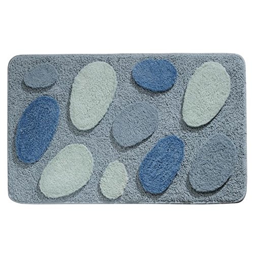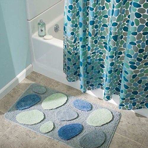mDesign Pebbles Soft Microfiber Non-Slip Bathroom Mat/Rug for Bathroom, Vanity, Bathtub/Shower, Dorm Room - 34" x 21", Blue