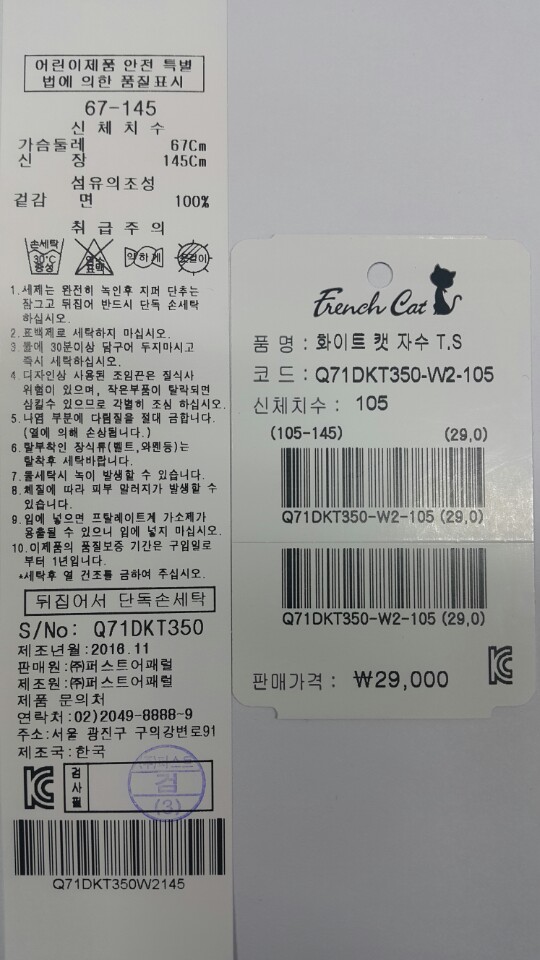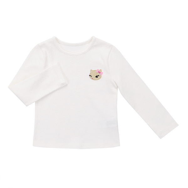 화이트 컬러의 다이마루 티셔츠 입니다. 오른쪽 가슴 상단에는 깜찍한 고양이 자수를 넣어주어 프랜치캣만의 귀여운 느낌을 더해주었습니다. 원피스 안에 레이어드 해서 입거나 바지나 스커트에 코디하시기 좋은 데일리 아이템입니다.