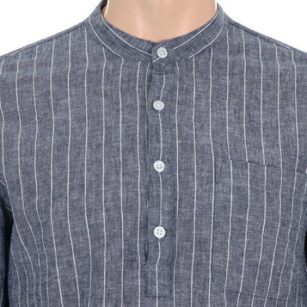 남성 린넨 헨리넥 스트라이프 셔츠입니다