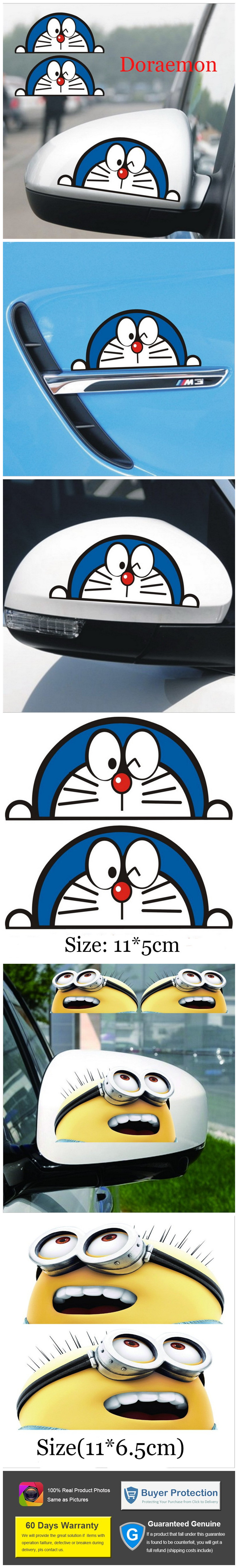 Description:u0026nbsp;2PCS Despicable Me/Doraemonu0026nbsp;Minions Cute Funny Cartoon Glue Sticker Car Decal Covers Waterproof Reflective on Rearview Mirror