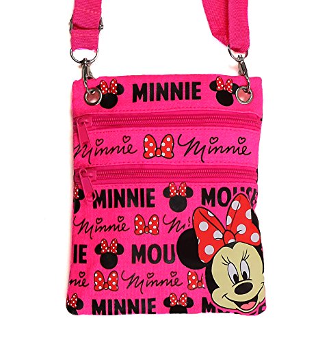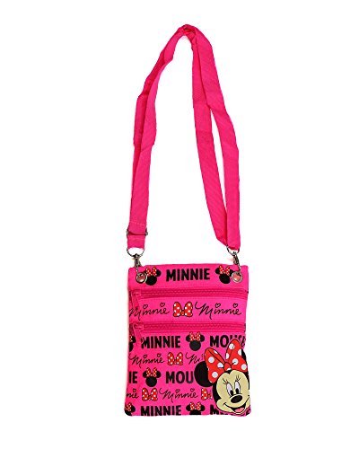 Disney's Minnie Mouse "Glam" Cross-Body Passport Purse Shoulder Bag, Neon Pink