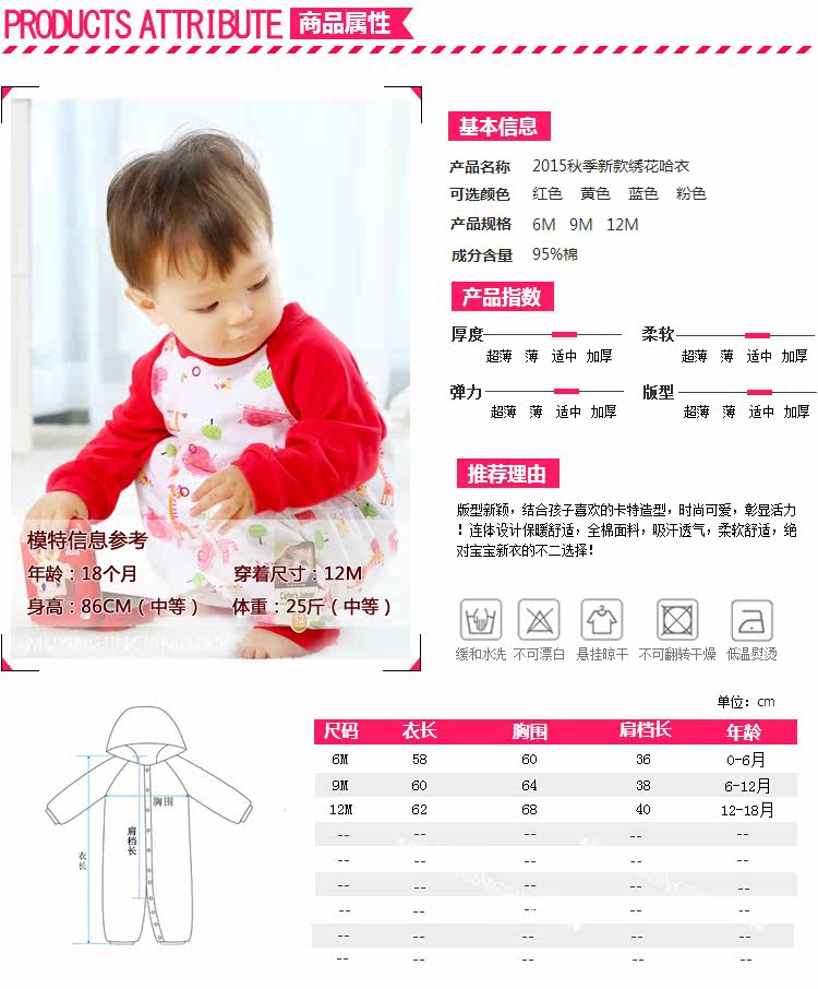 温馨提示:此款哈衣全棉面料,清洗衣物时请勿使用温水清洗!?