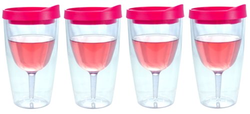 -. Title : Southern Homewares Insulated Vino Double Wall Acrylic with Drink Through Lid Wine Tumbler (Set of 4), 10 oz, Pink