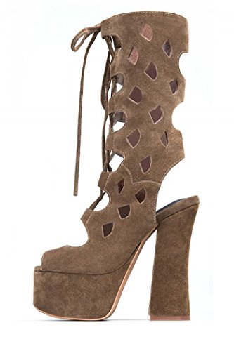 (Jeffrey Campbell)/Women's/Sandals/DIRECT FROM USA/Jeffrey Campbell Senara Taupe Suede Lace Up Cut Out Platform Block Heel Sandals
