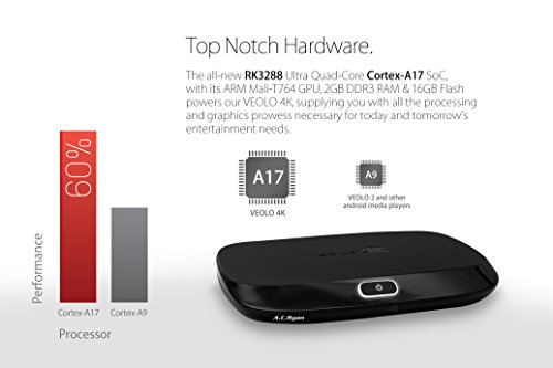 The all-new RK3288 Ultra Quad-Core Cortex-A17 SoC, with its ARM Mali-T764 GPU, 2GB DDR3 RAM & 16GB Flash powers our VEOLO 4K, supplying you with all the processing and graphics prowess necessary for today and tomorrow's entertainment needs.
