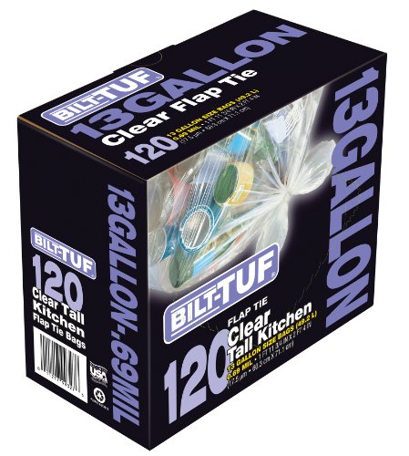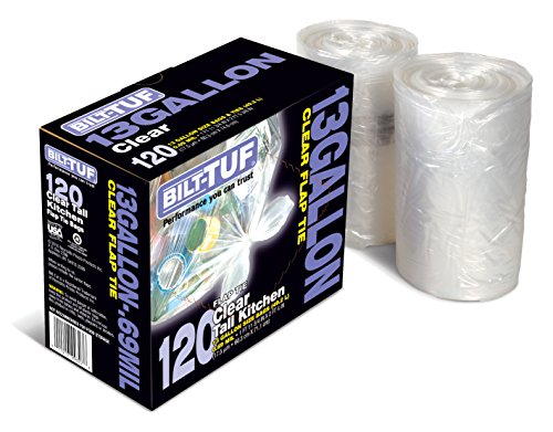 Clear Trash Bags Tall Kitchen 13 Gallon Flap Tie 120 Count Garbage Bags - Bilt-Tuf