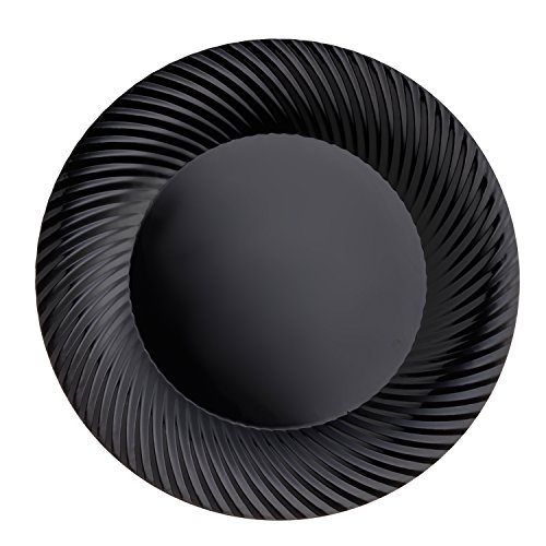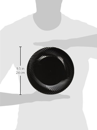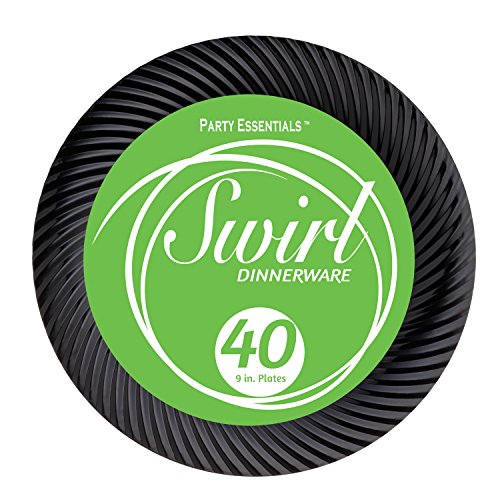 Party Essentials 40-Count Hard Plastic 9" Lunch/Dinner Plates with Swirled Rims, Black