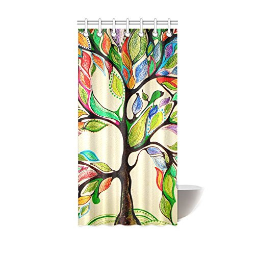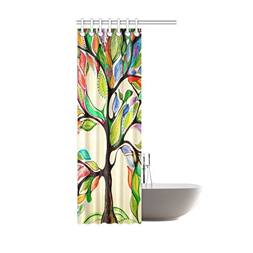 InterestPrint Colorful Art Tree Bath Decorations Bathroom Decor Sets with Hooks, Tree of Life Polyester Fabric Mildew Resistant Shower Curtain 36 X 72 Inches