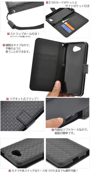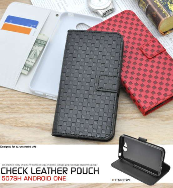 市松模様レザーデザインの507SH Android One用スタンドケースポーチ。