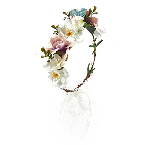 Flower Headband - Adjustable Floral Wreath Headband, Crown Garlands for Girls and Women - Great for Weddings, Festivals, Bridal Events, Parties, Hippies, One...