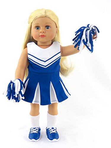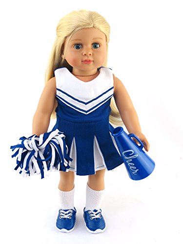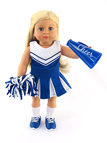 -. Title : Blue Cheerleader Outfit Cheerleading Uniform with Dress, Bloomers, Poms, Megaphone, Socks, and Shoes | Fits 18" American Girl Dolls, Madame Alexander, Our Generation, etc. | 18 Inch Doll Clothes