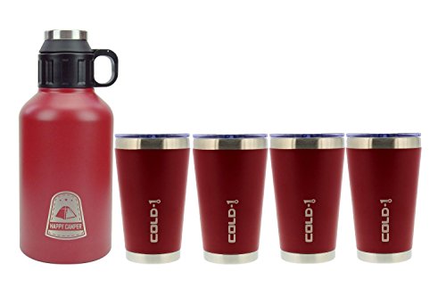 SET INCLUDES one red 64-ounce growler and 4 red 16-ounce tumblers