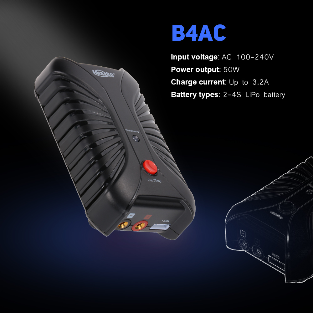 This charger charges 2-4S LiPo battery packs with just the press of a button. Everything is automatic, so there's no complicated guesswork. You get a safe, high-quality charge every time. It's the easiest charger you'll ever use!