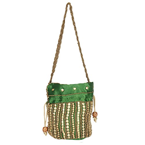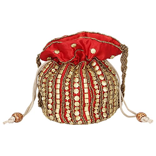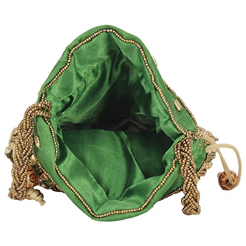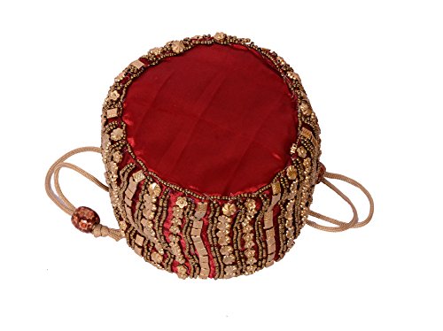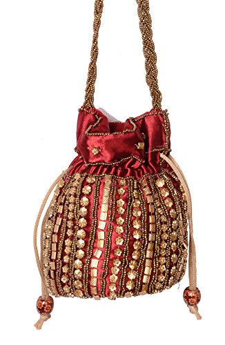-. Brand : Suman Handicraft -. Department : Womens -. Feature : Drawstring Potli Bag with Dense Beadwork Done by Hand / Satin / Easy Wash and Keep away from Heat / Dimensions: 4.5 in. x 5.5 in. / Used for Multiple Purpose like Wedding Enagagement Party & Other Functions. -. ProductGroup : Shoes -. ProductTypeName : HANDBAG -. Size : Dimensions: 4.5 in. x 5.5 in. -. Title : Traditional Satin Japuriya Style Potli Bag for Women & Girls