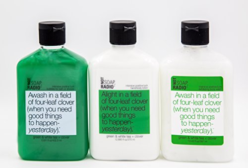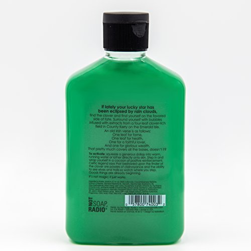 Aromatherapy Body Wash - Green Tea, White Tea & Clover - 13.6oz Intensive positive luck formula - Awash in a field of four-leaf clover (when you need good things to happen-yesterday).TM It's all about an abundance of GOOD LUCK! If lately your lucky star has been eclipsed by rain clouds, find the clover and find yourself on the favored side of fate. Surround yourself with bubbles infused with extracts from a four-leaf clover-rich field in County Kerry on the Emerald Isle. An old Irish verse is as follows: One leaf for fame, One leaf for health, One for a faithful lover, And one for glorious wealth. That pretty much covers all the bases, doesn't it? To activate: squeeze a generous dollop into warm, running water or lather directly onto skin. Step in and wrap yourself in a cocoon of positive reinforcement. Celtic legend says that bestowed upon the finder of the clover are powers of clairvoyance and the ability to see elves and trolls-so watch where you step. Goods things are already beginning. It's not magic; it just works.Feature