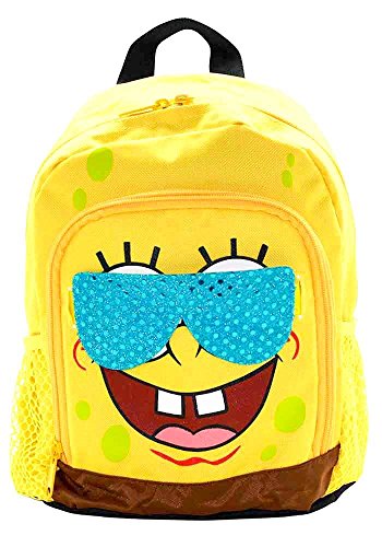 -. Brand : Nickelodeon Universe -. Color : Yellow -. Department : boys -. EAN : 0000007357879 -. Feature : backpack with two zipper pouches / two side mesh pouches / backpack with two sets of interchangeable glasses / 10 x 13 in -. Model : DS9720-C1-NOV999 -. PackageQuantity : 1 -. ProductGroup : Apparel -. ProductTypeName : LUGGAGE -. Size : Small -. Title : Small Spongebob Face Backpack with Glasses -. UPC : 000007357879