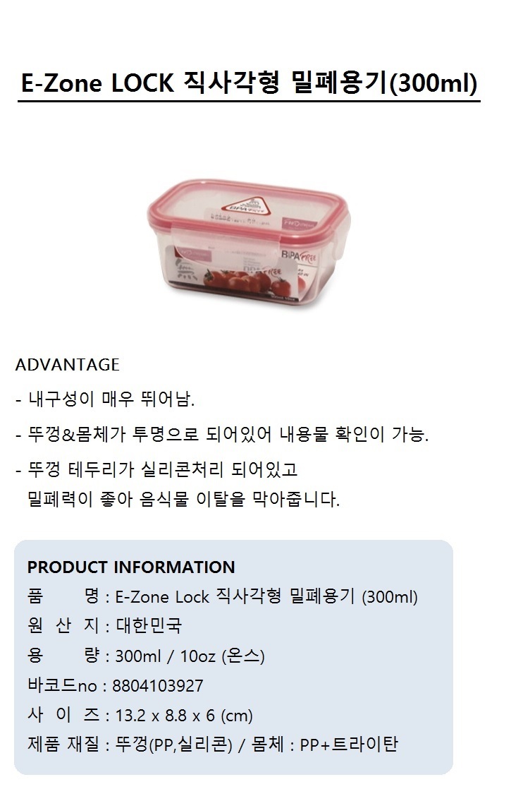 Lock Korean Rectangular Airtight Container 1-1 300ml This is a plastic miscellaneous miscellaneous goods