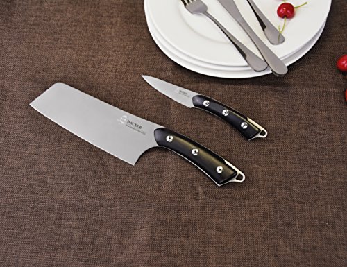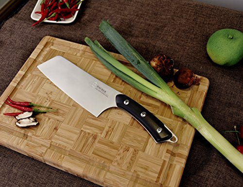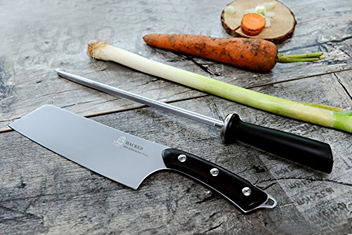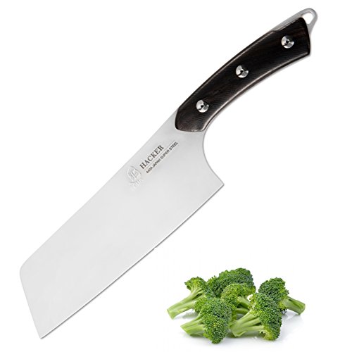 • Incredable Balance:TUO Hacker kitchen knives allow you to rock the rounded blade up and down for fast, efficient chopping and mincing. Your knuckles won't hit the cutting board, either. Possessing a full tang and ice-hardened blade for strength and durability, the knife comes very sharp and stays sharp for a long term. And Hacker series is dishwasher safe, it's always better to hand wash to lengthen the lifespan of the knife.Hacker knife has competitive pice.