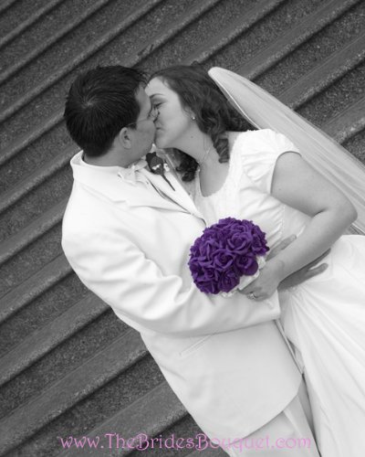 - Title : Purple Silk Rose Hand Tie (36 Roses) - Silk Bridal Wedding Bouquet
