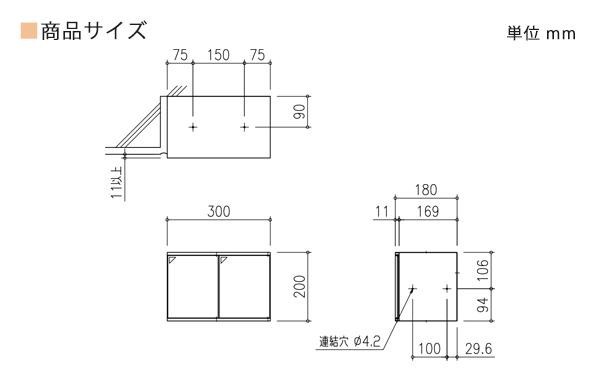 | サイズ | 外寸:幅300×奥行180×高さ200mm、内寸:幅149×奥行170×高さ198mm(1扉あたり) 個装サイズ:22×31×22cm |