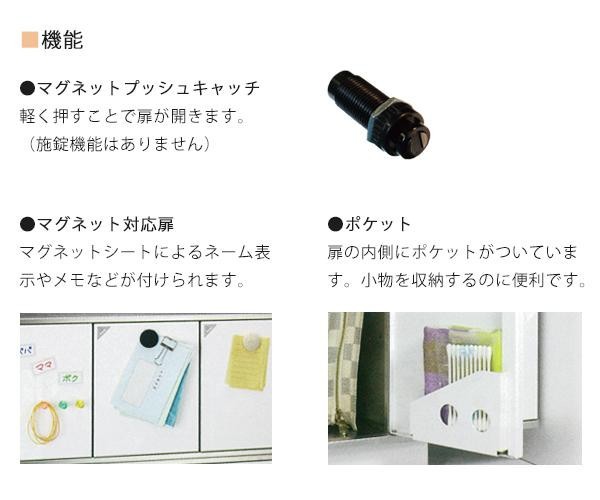| 仕様 | 錠前:マグネットプッシュキャッチ(施錠機能なし) 扉:ポケット付き 保証期間:2年(保証書は付属しません) |