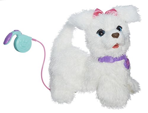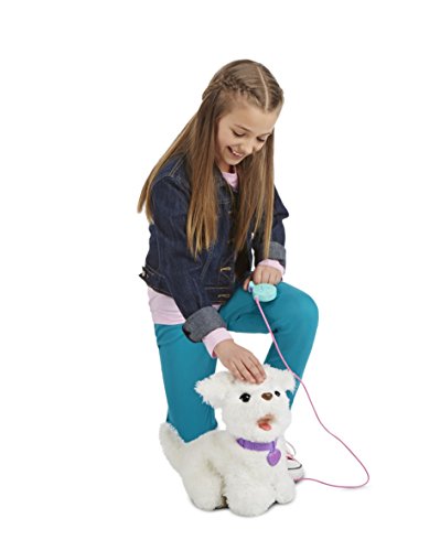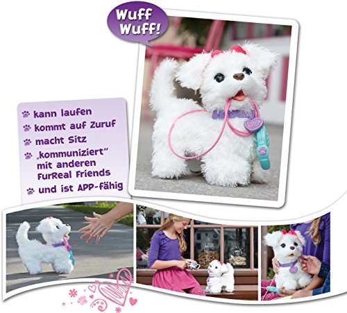 Get Up & Go Go, My Walkin' Pup has so much personality. She's smart, adventurous and has the sweetest puppy look! In addition to walking, Get Up & Go Go sits on command and wags her tail. You'll just melt when she tilts her head your way. She responds to your voice and can even hear Pom Pom, My Baby Panda. When Get Up & Go Go, My Walkin' Pup and Pom Pom, My Baby Panda are together they babble back forth like best friends. And now you can play with Get Up & Go Go, My Walkin' Pup in a whole new way. Get Up & Go Go, My Walkin' Pup will interact with and respond to a brand new FurReal Friends app.Feature