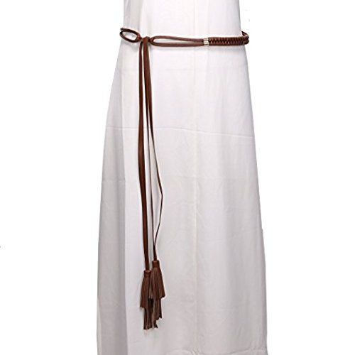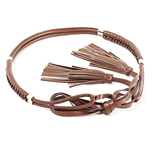 BCBG MAXAZRIA Women's Skinny Braided Free Knot Faux Leather Fashion Dress Waist Belt with Tassel