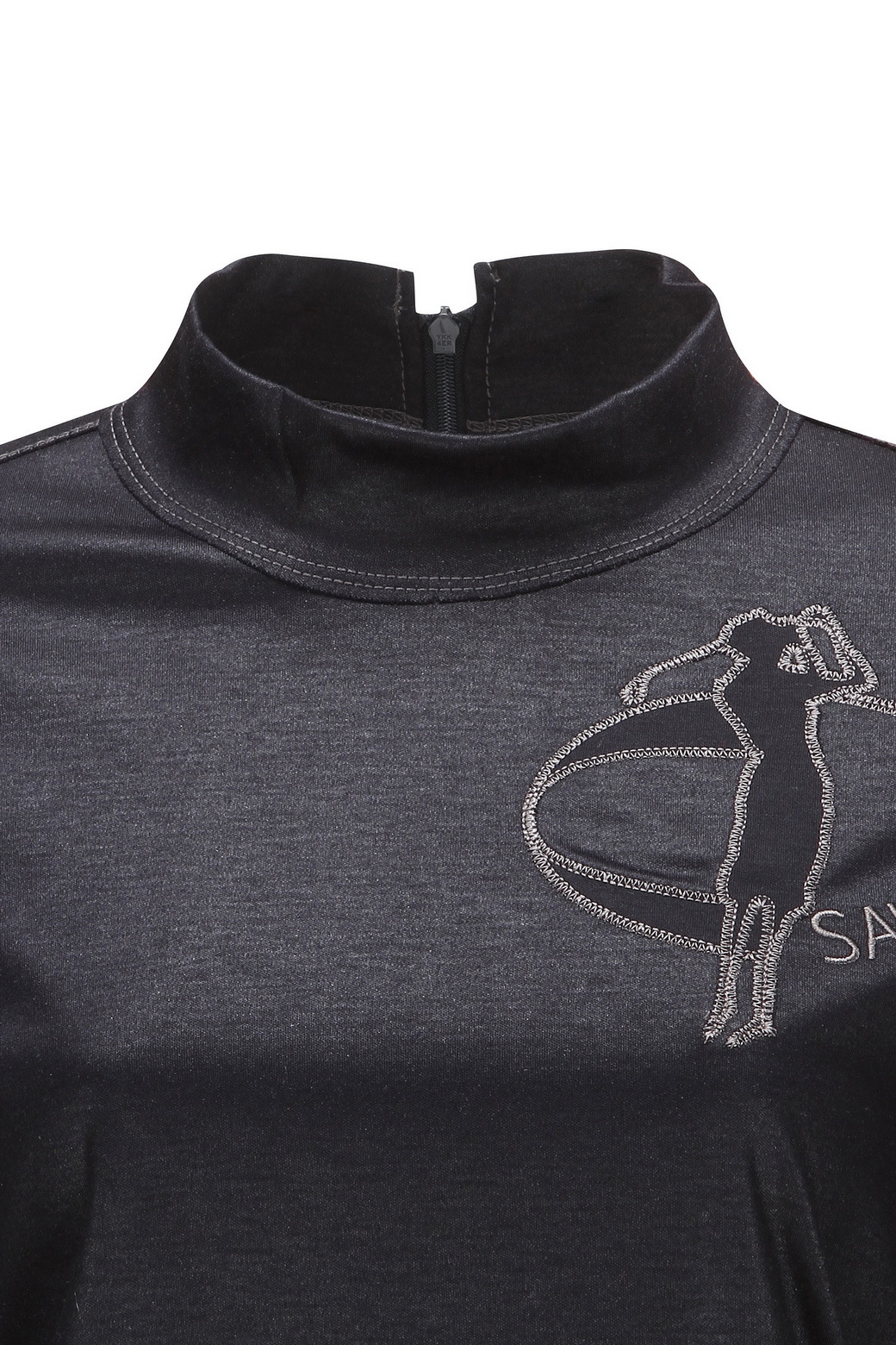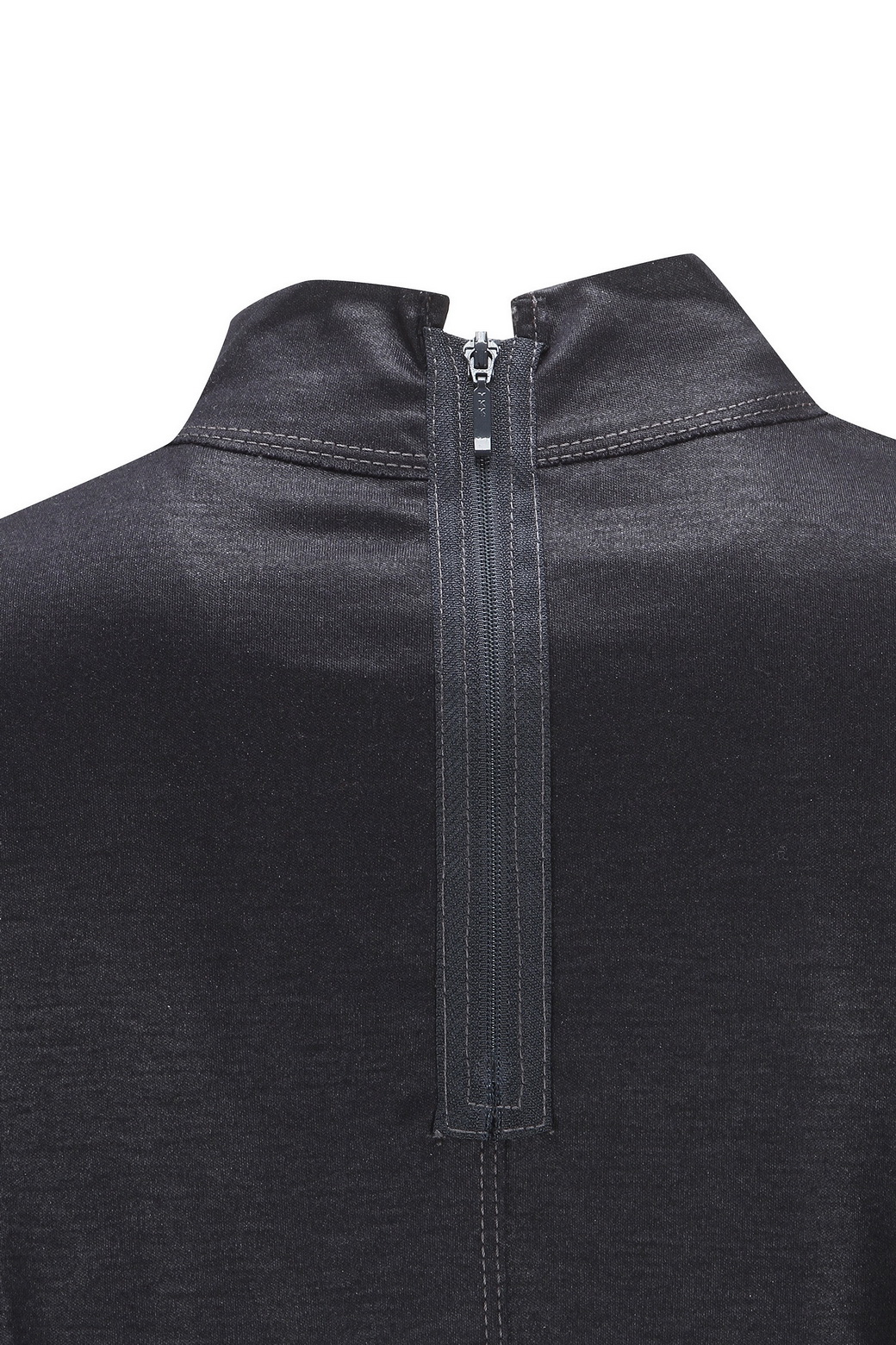 - 하이넥 디자인에 후면의 지퍼 여밈으로
