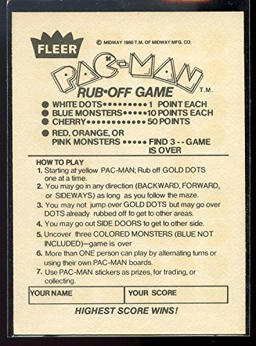 1980 Fleer Midway PAC-MAN Arcade Rub Off Game Card RARE - Mint Condition Ships in a Brand New Holder