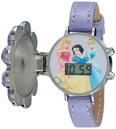 This cute purple leather strap watch with lovely flower shape cover is prefect for girls. It is with easy-to-read LCD display, colorful Princesses characters on dial.Feature