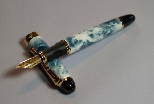 -. Title : Dragonpad? Classic Cigar Golden Ring Fountain Pen, Pen Barrel Is Finished in Gray Mable Look with Push in Style Ink Converter