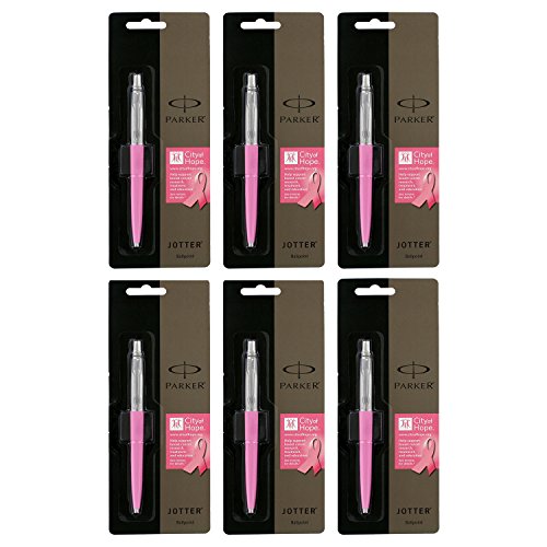-. Title : Parker Jotter Pink Ribbon Retractable Ball Point Pen, Medium Point, Blue Ink, Set of 6