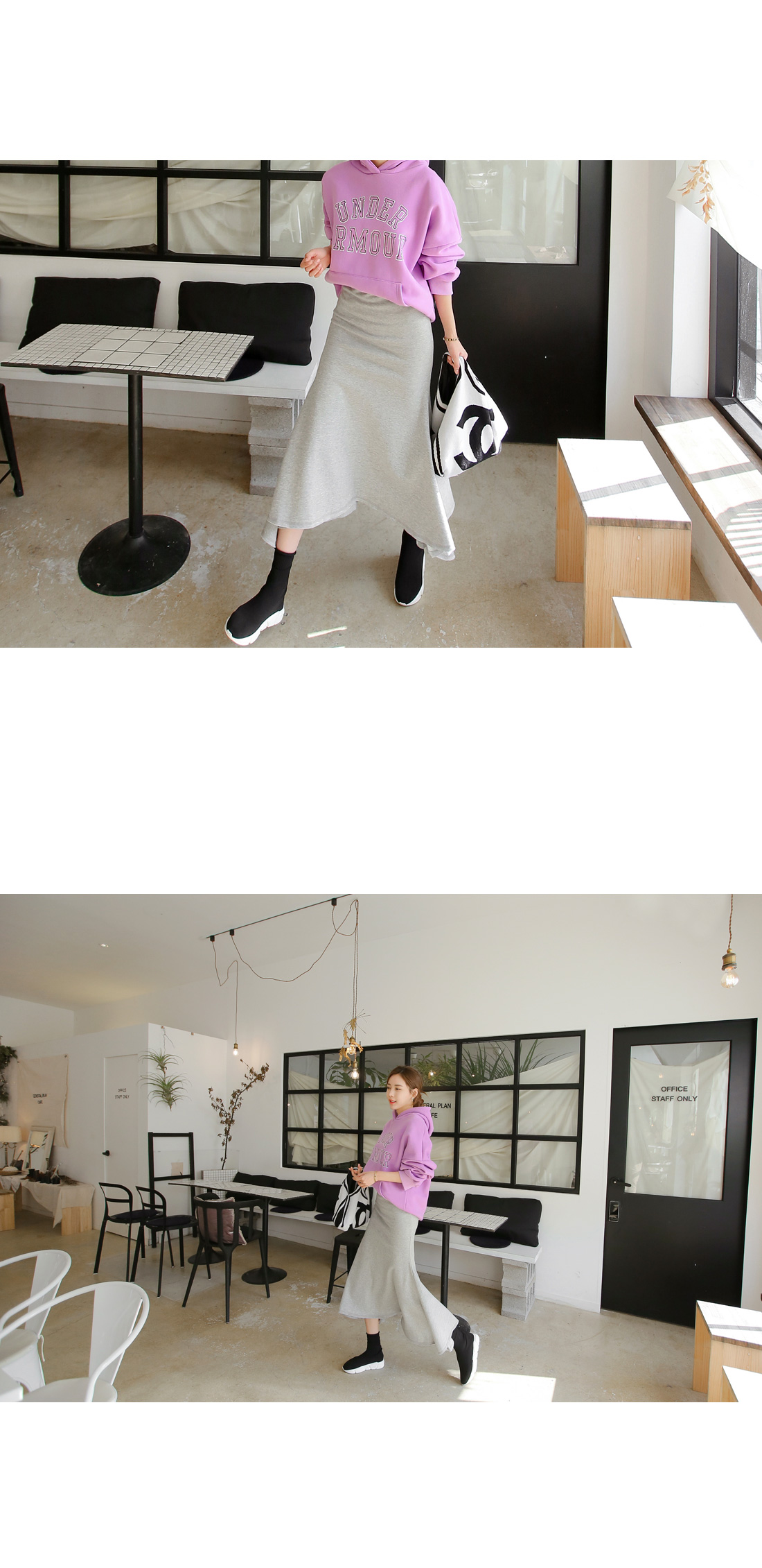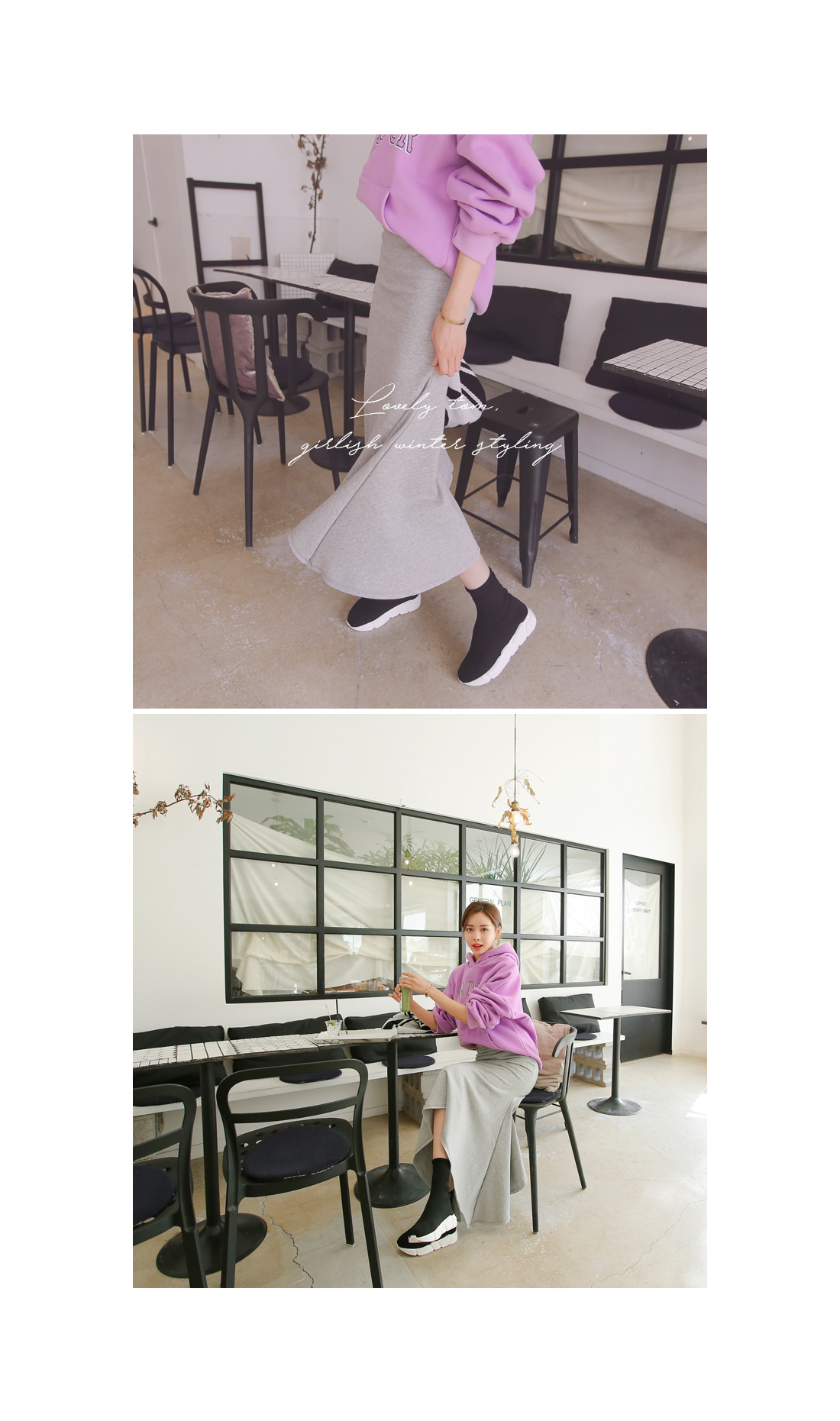 부드럽고 따뜻한 기모 디테일의 머메이드 스커트를 소개합니다.