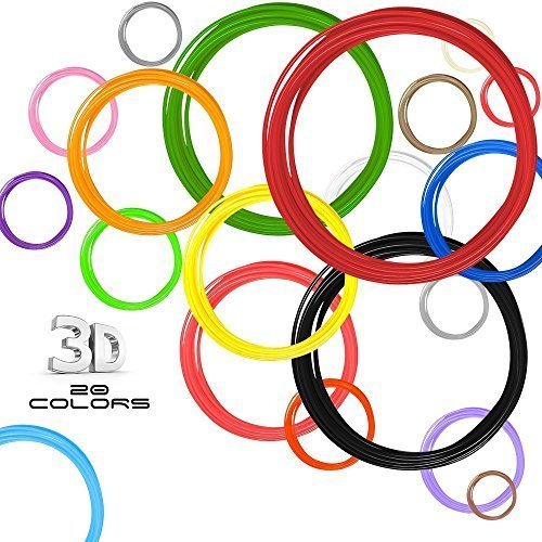 3D Filament Fun Pack - 1.75 ABS - 20 colors of which 2 GLOW IN DARK & 2 FLOURESCENT- 150+ Stencils BONUS (Downloadable PDF eBook) - OVER 400 ft of Colorful Filaments - 20 feet per color / 20 colors