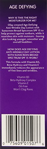 -. Title : Olay Age Defying, Anti-Wrinkle Day Lotion with Sunscreen Broad Spectrum , SPF 15, 3.4 Ounce (Pack of 2)