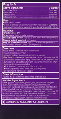 -. Feature : Nourishes skin with moisture - leaving skin looking younger, smoother and overall healthier. / Sunscreen Broad Spectrum SPF 15, with Vitamin B3 and Beta-Hydroxy, and Vitamin E, immediately reduces the appearance of fine lines and wrinkles. / Dermatologist tested, oil-free and it won't clog pores, Benefits: Anti aging / For the following skin types: Normal, Dry, Combination/Oily, Oily / Helps with these face concerns: Fine Lines/Wrinkles, Sun Damage / Benefits: Anti aging
