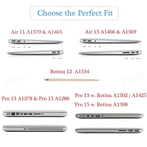 -. Binding : Personal Computers -. Brand : YMIX -. Feature : Perfectly fits MacBook Air 11.6" (Models: A1370 and A1465). / Fully access to all buttons and features.Snap on design, easy clip on and take off. / Protects your MacBook Air from scrapes and scratches. / Fully vented for safe heat disbursement * No Apple Logo Cut Out Design. / For a better shopping experience,PLEASE CHECK THE MODEL NUMBER ON THE BACK OF YOUR MACBOOK,or CHECK THE MODEL GUIDE IMAGE ON THE LEFT.Please feel free to contact YMIX about our products. -. Label : YMIX -. Manufacturer : YMIX -. ProductGroup : PC Accessory -. ProductTypeName : CARRYING_CASE_OR_BAG -. Publisher : YMIX -. Studio : YMIX -. Title : MacBook Air 11.6" Case, YMIX AIR 11-inch Soft-Touch Series Hard Case Cover for Apple MacBook Air 11 inches (Models: A1370 and A1465) ()