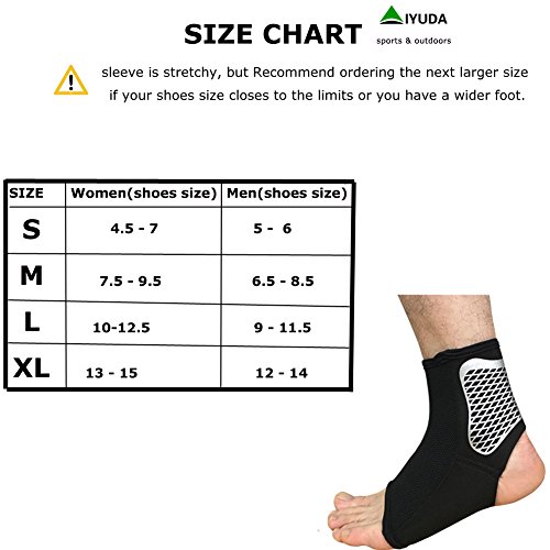 -. Feature : HELP TO RECOVERY - Helps to improve blood circulation and reduces muscle fatigue from Plantar Fasciitis, Osteoporosis, Achilles Tendon, Stress Fracture, Edema, Splint, Swelling, Metatarsal, Heel Spurs, Heel Pain Symp and other foot discomfort / COMPRESSION & ELASTIC - designed for comfort support around your heel and foot when workouts and during casual everyday activities / BREATHABLE, COOLING & Soft- made of high quality Nylon-Weave fabric and ultra-light neoprene which keeps you dry and comfortable, gives you a smooth and soft touch feel all day and all night long / NON SLIP - moisture wicking and sweat absorption which will prevent sweat of leg flow to the feet / PERFORMANCE - Our ankle sleeve are the perfect fit for any activity requiring ankle movement, including Baseball, Basketball, Dancing, Crossfit, Soccer Golf, Hiking, Running, Tennis, Volleyball and more! You¡¯ll be able to enjoy exceptional ankle support while still maintaining your peak performance and full range of leg motion!