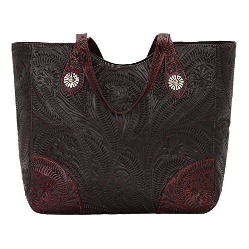 American West Annie's Secret Collection Large Zip Top Tote, Chocolate / Distressed Crimson