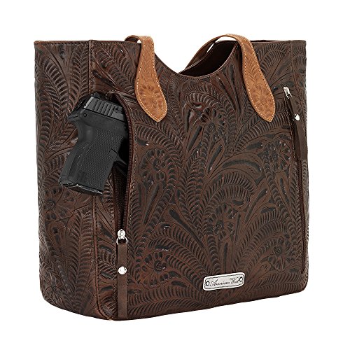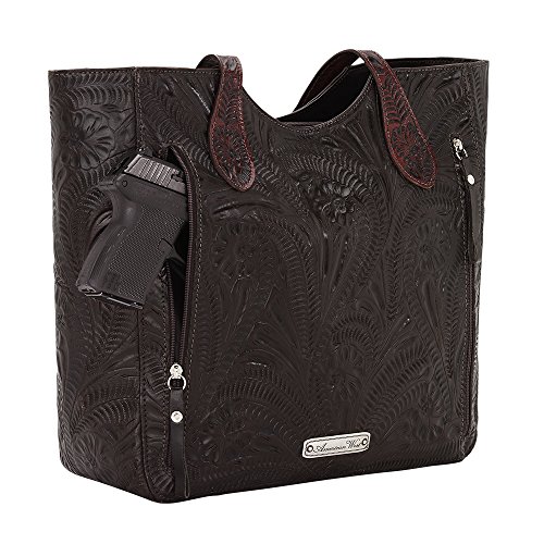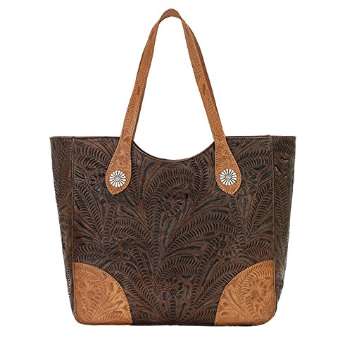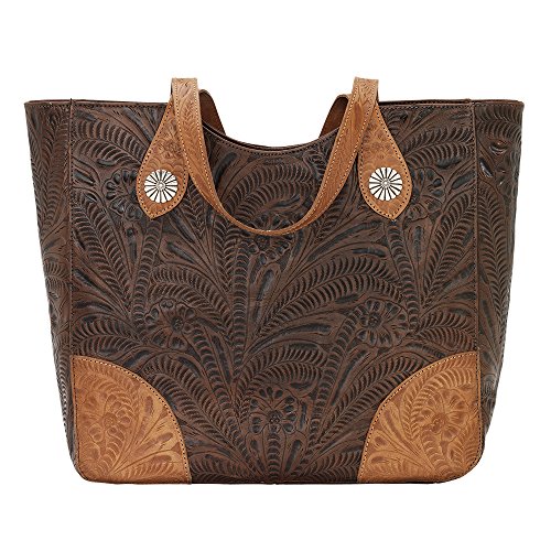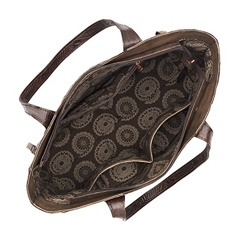 American West Annie's Secret Collection Large Zip Top Tote, Chestnut Brown / Golden Tan