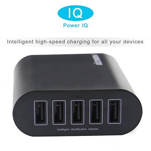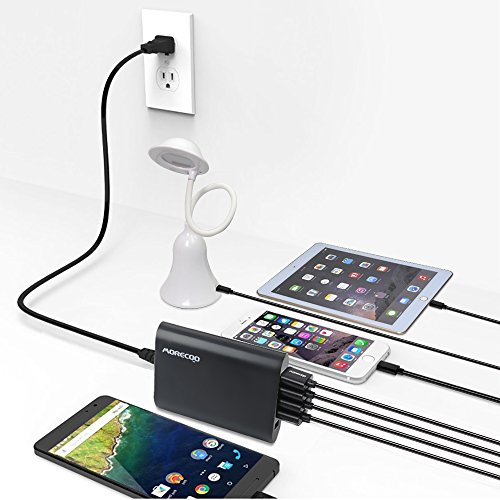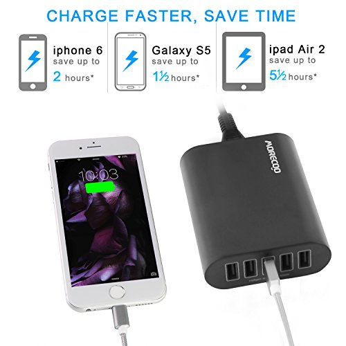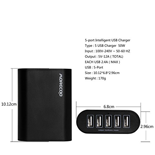 USB Charger,MORECOO 50W/10A 5-Port Travel Wall Charger Charging Station Desktop Charger for iPhone, iPad, Samsung Galaxy and USB Charged Device (Black)s