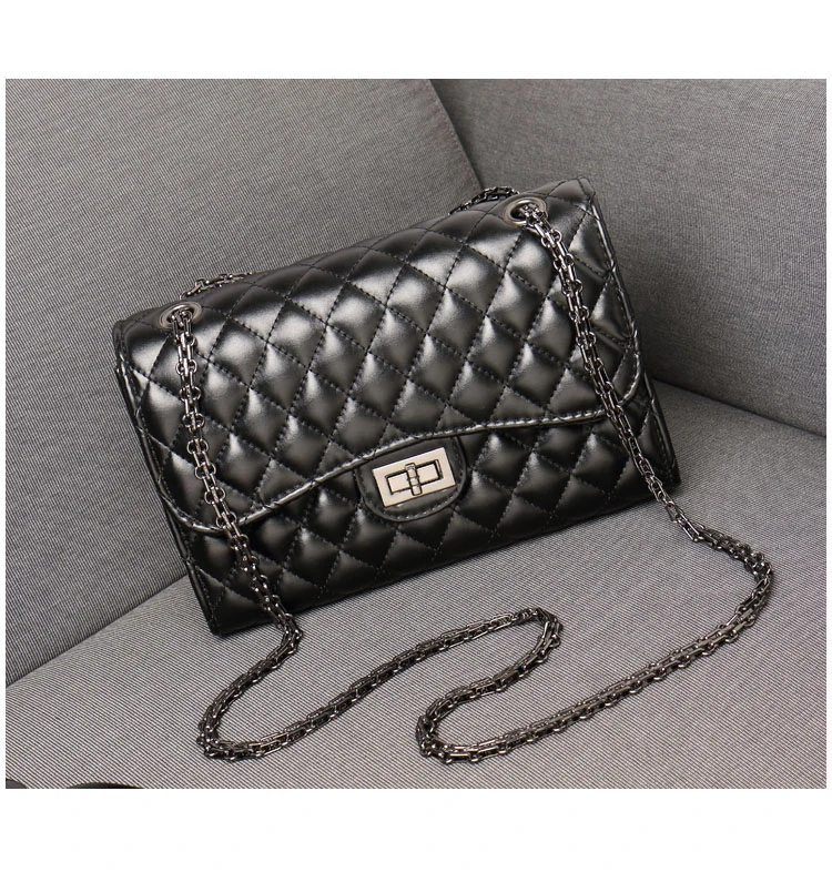 lady quilted bag large quilted bag:chain crossbody bag chain handbag leather shoulder bag chain bag