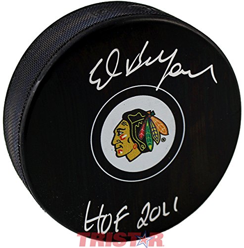 Ed Belfour Signed Autographed Chicago Blackhawks Logo Puck Inscribed HOF 11 TRISTAR COA