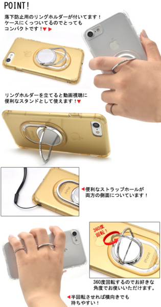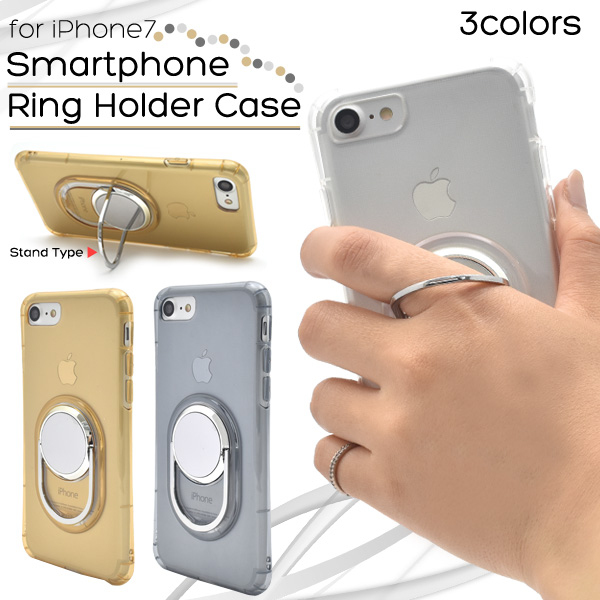 落下防止用のリングホルダーがついたiPhone7用のケースです。
