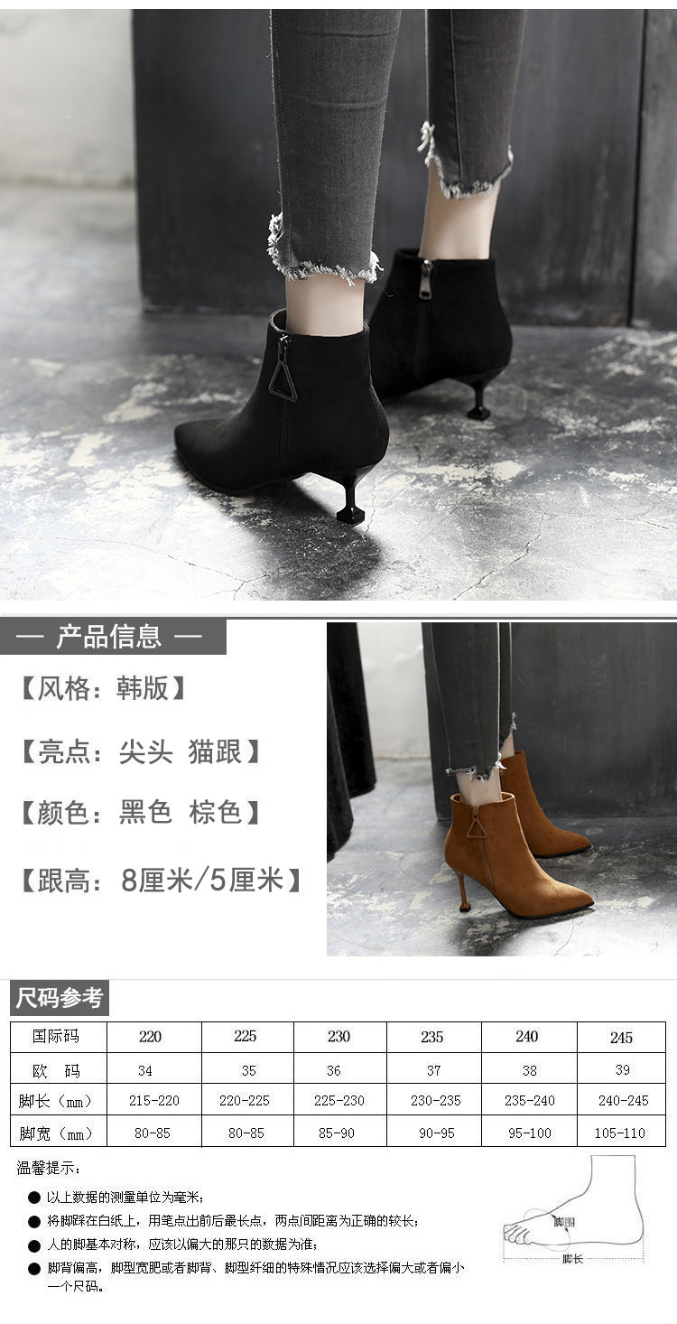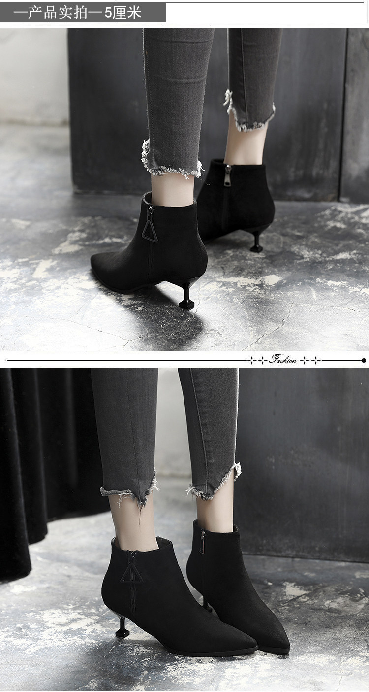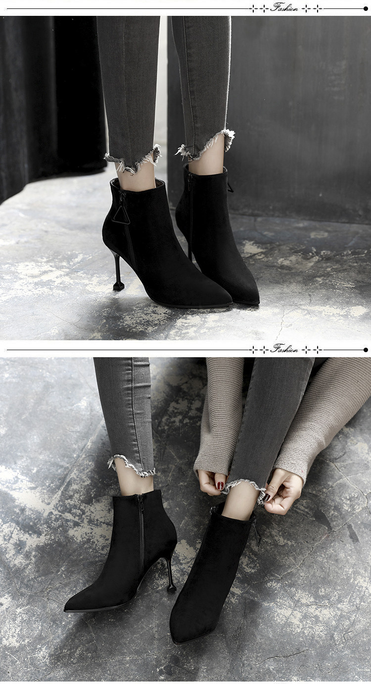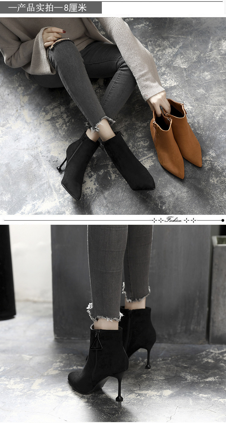 尖头细跟裸靴女冬季高跟鞋短靴百搭马丁靴春秋性感单靴子